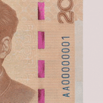 2019年版20元、10元紙幣則采用光變鏤空開窗安全線,與2015年版100元紙幣類似,改變鈔票觀察角度,安全線顏色在紅色和綠色之間變化;透光觀察,20元紙幣可見“¥20”,10元紙幣可見“¥10”。