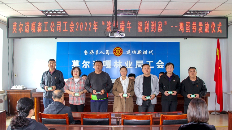 5月30日,莫爾道嘎森工公司工會舉行2022年“濃情端午 福利到家”雞蛋券發放儀式,為公司在崗職工每人發放8斤雞蛋,向廣大干部職工致以節日的慰問。(高山)