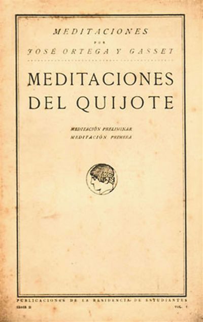 1914年,奧爾特加出版了第一本著作《〈堂吉訶德〉沉思錄》。100多年來,學界始終對這本薄薄的小冊子興趣盎然、研究不斷。奧爾特加將自己對哲學、美學、文學以及西班牙國情等問題的思考進行了理念層面的概述與建構。人們認為在這些文字中,“閃爍著這位年輕哲人對自己尚未完全成形的思想體系最初的靈感,對他未來的哲學思想具有奠基性、關鍵性的作用”。