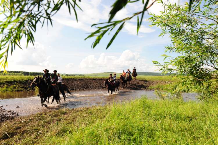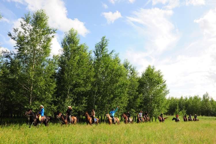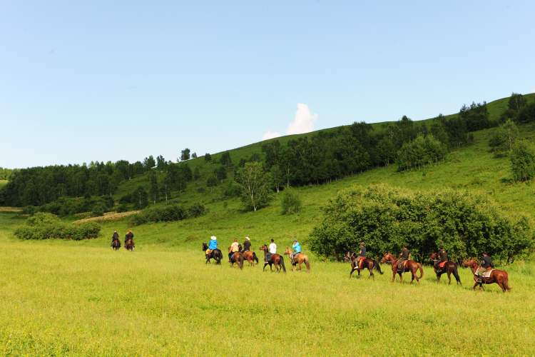 游客走上高高的興安嶺,騎馬穿行于自然生態良好的林間、草原、河流,以自然、舒服的狀態走進自然、親近自然。