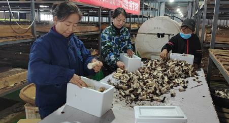 “這種菇栽培周期短、產出高,一冬可收獲3至4茬鮮菇,1平方米能產12至14斤左右。現在電商直播帶貨正火,我們正計劃著讓職工學直播,利用電商渠道拓寬銷路,讓菌菇走出大山,銷往全國各地。”正在菌室里組織采收鮮菇的林場主任周敏慶話語里充滿了對食用菌產業發展的信心。