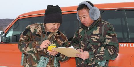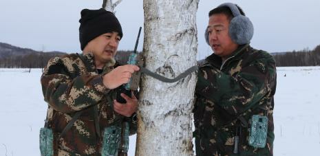 伴隨著踏雪的嘎吱聲,趙建明和張文君整理好GPS、無人機、紅外相機、望遠鏡等設(shè)備,開始了一天的巡護監(jiān)測工作。