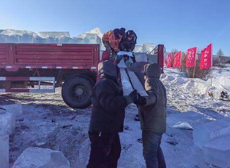 根據設計主題,他們頂著零下四十幾攝氏度的嚴寒,天一亮就出工,一直到天黑看不見了才收工。由于工作現場離住宿地點較遠,中午就在車里休息片刻,對付一口泡面,這樣連續緊張奮戰了8天。