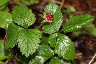 鑒別特征:薔薇科懸鉤子屬草質狀木本,高10—30厘米。莖斜升,近四棱形,常單生,被短柔毛。羽狀三出復葉,小葉片菱形至菱狀倒卵形,先端銳塵或圓鈍,基部楔形,側生小葉基部偏斜,邊緣有不規則的重鋸齒,上面綠色,下面淡綠,被短柔毛;葉柄有疏柔毛?;▎紊?,頂生,直徑1—1.5厘米;萼片披針形,花瓣寬倒卵形,紫紅色,長7—10毫米。聚合果暗紅色?;ü?—9月。