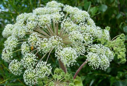 鑒別特征:傘形科當歸屬多年生草本植物。高100—200厘米。直根四柱形,粗大,分枝,棕黃色,具香氣。莖直立,上部分枝。基生時與莖下葉具長柄;葉片三回羽狀全裂,三角形或卵狀三角形,長與寬近相等;一回羽片3—4對,具柄,卵狀三角形;二回羽片2—3對,卵狀披針形;最終裂片披針形或條狀披針形,先端漸尖或銳尖,基部稍下延,邊緣具不整齊的鋸齒與白色軟骨質(zhì),葉脈隆起。頂生葉簡化成膨大的葉鞘。復(fù)傘形花序;傘輻多數(shù);無總苞片或具1橢圓形鞘狀總苞;小總苞片條形或條狀披針形,與花梗近等長;花白色。果實橢圓形。