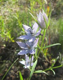 鑒別特征:龍膽科獐牙菜屬一年生草本植物,高15—30厘米。莖直立,四棱形,沿棱具狹翅。葉對生,條狀披針形或條形,先端長漸尖,全緣,基部漸狹,具1脈,無柄。聚傘花序通常具3花,頂生或腋生;花5基數;萼片狹長形,先端銳尖或漸尖,具1脈;花冠淡藍紫色,輻狀,先端漸尖,具紫色脈5—7條,基部具2囊狀淡黃色腺洼,其邊緣具白色流蘇狀長毛,表面具小瘤狀凸起;花藥狹矩圓形,藍色。蒴果矩圓形。
