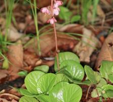 鑒別特征:鹿蹄草科鹿蹄草屬多年生常綠草本狀小半灌木,高15—30厘米。葉3—7,基生,薄革質,近圓形或圓卵形或卵狀橢圓形,先端圓鈍,基部近圓形或圓楔形,邊緣近全緣或有不明顯的淺齒?;ㄝ愠ё仙?,有2—3枚褐色的鱗片狀葉,較大,狹長圓形或長圓狀卵形??偁罨ㄐ?,有7—15花,花傾斜,稍下垂,紫紅色;萼片三角狀寬披針形;花瓣倒圓卵形;雄蕊10;花柱傾斜,上部向上彎曲,頂端有環狀突起,伸出花冠;柱頭5圓裂。蒴果扁球形,帶紫紅色。