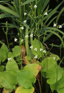 鑒別特征:澤瀉科澤瀉屬多年生草本植物。具短縮的塊根頭;葉基生,通常多數;沉水葉條形或披針形,挺水葉寬披針形、橢圓形至卵形,頂端漸尖,稀急尖,基部截形、淺心形或近于圓形,具5—7條弧形脈,橫脈多數;葉柄基部擴大成鞘,邊緣膜質;花葶直立,高達80厘米;花序具3—8輪分枝,每節輪生6—9個分枝,輪生的分枝可再分枝,形成圓錐狀復傘形花序;苞片披針形;花兩性;外輪花被片3,綠色,卵形或寬卵形,通常具7脈,邊緣膜質;內輪花被片3,白色,邊緣具不規則粗齒;雄蕊長為雌蕊的2倍;花藥長圓形,黃色;花柱直立;柱頭短,為花柱的1/9—1/5;瘦果橢圓形。
