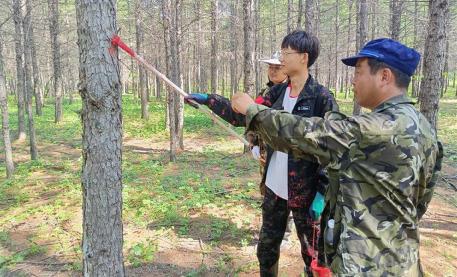“每木檢尺,要求測(cè)量樣地內(nèi)每一株樹木距地面1.3米處的胸高直徑,如果是斜坡的話,則在上坡位置測(cè)定。每木標(biāo)記,對(duì)樣地內(nèi)的樹木進(jìn)行刷漆標(biāo)記,要標(biāo)記在正面明顯處,并做好相關(guān)數(shù)據(jù)的記錄。”為確保培訓(xùn)取得最佳效果,森林資源管理中心選派經(jīng)驗(yàn)豐富的技術(shù)骨干程宏禹帶領(lǐng)新入職大學(xué)生員工深入山場(chǎng),講解外業(yè)實(shí)操方法。