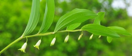 鑒別特征:多年生草本。根狀莖粗壯,圓柱形,有節(jié),黃白色,生有須根;莖有縱棱,高25—60厘米;葉互生,橢圓形至卵狀矩圓形,兩面無毛,下面帶灰白色或粉白色;花序具1—3花,腋生,花梗長,具條狀披針形苞片或無;花被白色帶黃綠,花藥黃色;花柱絲狀,內(nèi)藏;漿果球形,熟時(shí)藍(lán)黑色。
