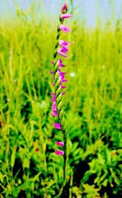 屬多年生草本植物,高15—40厘米。根數(shù)條簇生,指狀,肉質(zhì);莖直立,上部具苞片狀小葉;近基部生葉3—5片,葉條狀披針形或條形,先端鈍、急尖或近漸尖;總狀花序具多數(shù)密生的花,似穗狀,螺旋狀扭曲,花序軸被腺毛;花苞片卵形;花小,淡紅色、紫紅色或粉色;中萼片狹橢圓形或卵狀披針形,具1—3脈;側(cè)萼片披針形,先端尾狀,具脈3—5條;花瓣狹矩圓形;蒴果具3棱。