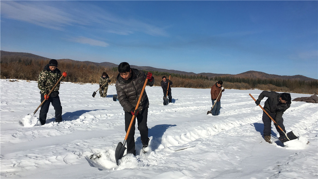 該處采取覆雪防寒法,將埋在土壤中越冬的西伯利亞紅松苗木用雪埋嚴、埋實, 一般床面南側迎風面適當加厚覆雪。使紅松苗木及苗床土壤保持一定溫度和濕度,不受氣溫急劇變化和其他外界不良因素的影響,減少紅松苗木水分的蒸騰和土壤水分的蒸發,保持一定的土壤水分,有利于保持幼苗體內的水分平衡,可以有效地防止產生凍害和紅松苗木生理干旱而引起的死亡。(時蕊)