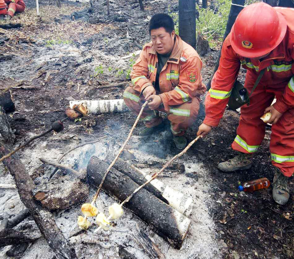 由于大部分撲火隊員攜帶的僅僅是一天的給養,庫都爾林業局擔起了火場2000多人的給養后勤保障。林業局機關和防火辦機關人員,一天一夜里,就蒸了5500多斤饅頭。