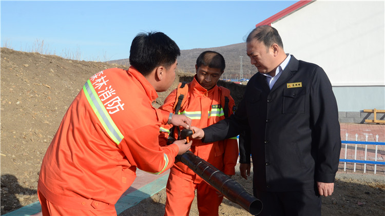 在阿爾山林業局,工作組一行相繼來到柴源、南溝、天池、金江溝林場,深入一線了解各林場撲火隊員工作生活、防撲火裝備和物資儲備等情況,對沿途各檢查站人員設置、檢查巡護、防火通訊、撲火工具配備和牧業點防火工作情況進行現場檢查,叮囑各單位不僅要加強檢查巡護力度,全面了解掌握生態功能區內人員活動情況,還要落實好防火通訊、撲火裝備物資等設施設備,做到“耳聰目明”,如遇火情,能夠做到“打早、打小、打了”。