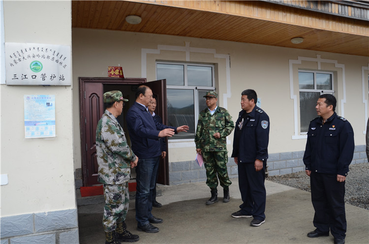 閆宏光在西沿江檢查站檢查森林防火工作,與保護(hù)區(qū)相關(guān)人員探討購買服務(wù)工作