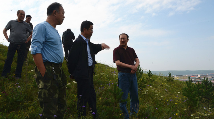 閆宏光登上根河林業局電視塔山,查看生態脆弱區(干旱陽坡)造林情況。