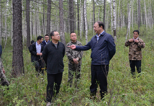閆宏光詳細詢問伊圖里河林業局營林工作進度,強調要堅持適地適樹原則,見縫插綠,大力推進國土綠化。