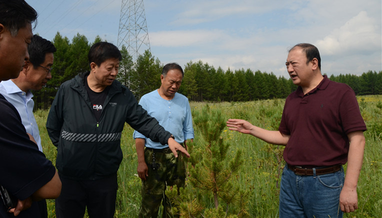 在好里堡林場造林場地,閆宏光與大家探討樹種選擇、技術規程。