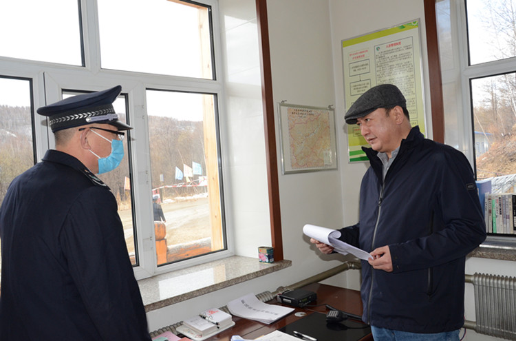 在溫河生態(tài)功能區(qū)103檢查站,閆宏光、宋德才一行認(rèn)真查看各項檢查措施落實情況,強(qiáng)調(diào)在主要溝口、路口、重點部位必須嚴(yán)防死守。