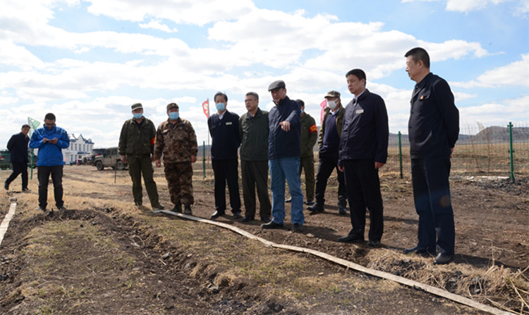 在溫河生態(tài)功能區(qū)一處牧業(yè)點,閆宏光、宋德才一行逐項查看各項防滅火措施落實情況。