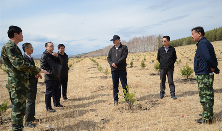 在金河林業局達賴溝林場,閆宏光、高昇一行走進重點區域綠化造林地塊查看造林成活情況,要求結合實際增加造林任務,加快國土綠化行動進程