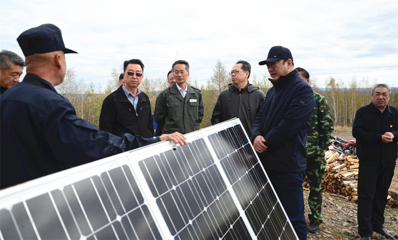 在圖里河林業局101瞭望塔,閆宏光、高昇一行檢查瞭望工作,強調當前正值防火緊要期,要加強瞭望,發揮好“眼睛”的作用。