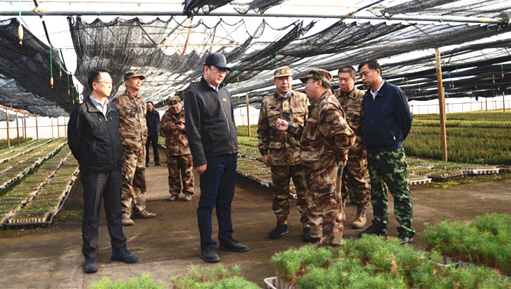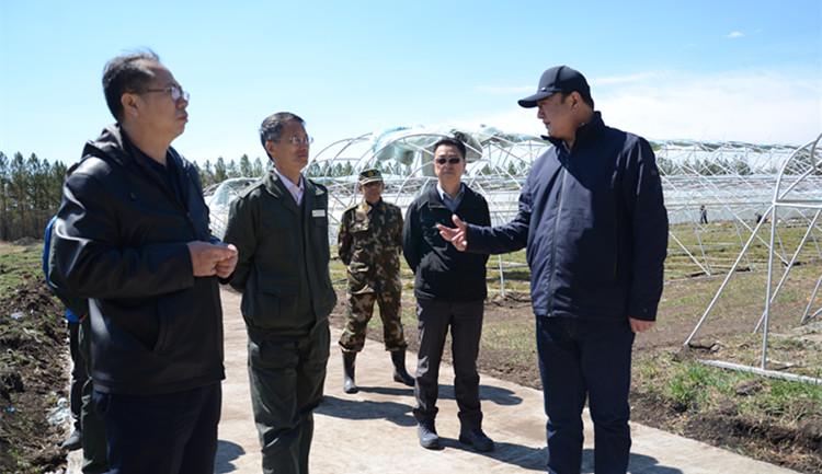 在金河林業局苗圃,閆宏光、高昇一行走進育苗大棚,逐一查看育苗種類,詢問育苗數量,要求進一步創新經營管理機制,在滿足本局造林需求的同時,發展綠色生態產業