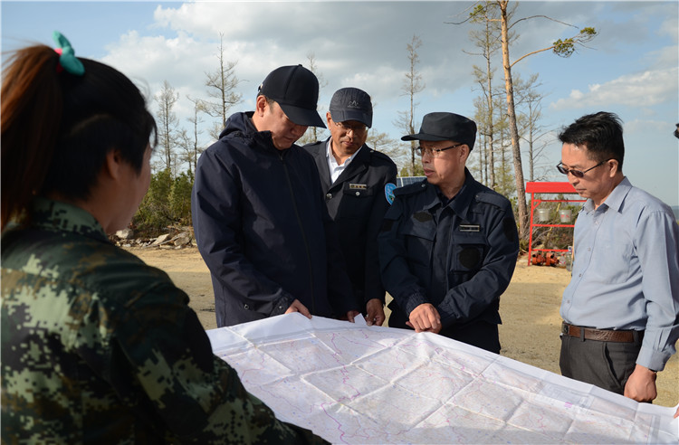 在北部原始林區爬松嶺瞭望塔,閆宏光、高昇一行查看原始林區瞭望塔布局,了解“夫妻”瞭望塔工作生活條件,詢問抽調瞭望員支援原始林區工作情況,強調瞭望人員要履好職、盡好責,做到早發現、早報告。
