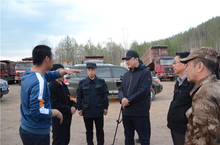 在北部原始林區一處公路施工作業點,閆宏光、高昇一行逐一檢查防火措施落實情況,查看施工進度,強調林業作為項目建設的主體,在抓好防火的同時,要積極主動聯系施工單位,協調解決建設中存在的困難和問題,把好施工進度、質量關。