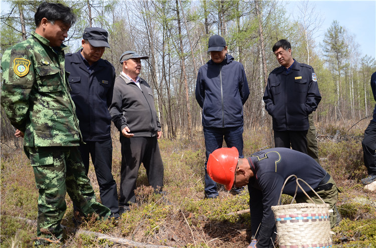 在滿歸林業局烏龍岱林場補植補造場地,閆宏光、高昇一行詳細查看造林規程,強調要攜帶機具邊待命邊造林,做到防火造林兩不誤。