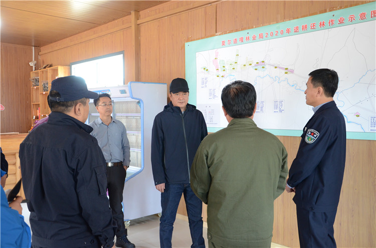在莫爾道嘎林業(yè)局退耕還林 森林防火前線聯(lián)合指揮部,閆宏光、高昇一行了解造林進(jìn)度、種類,強(qiáng)調(diào)要嚴(yán)格執(zhí)行技術(shù)規(guī)程,合理選擇造林樹種,保證造林成活率。
