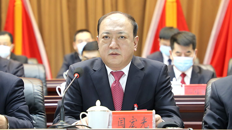 閆宏光的工作報告共分為兩個部分:一、2021年工作回顧;二、2022年主要目標任務。
