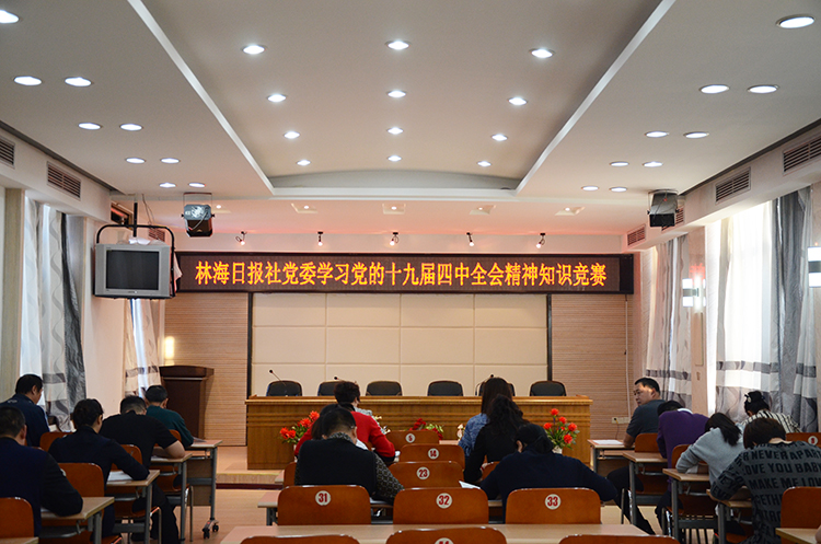 12月2日,林海日報(bào)社黨委舉辦學(xué)習(xí)黨的十九屆四中全會精神知識競賽,進(jìn)一步引導(dǎo)黨員干部深入學(xué)習(xí)四中全會精神,檢驗(yàn)學(xué)習(xí)成效。