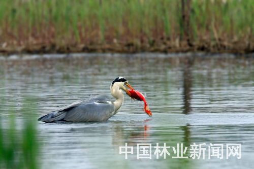 在靠近公園南門處的一汪水池旁,只見壯觀的拍鳥大軍正端著“長槍短炮”,瞄準遠處一只立在水面的蒼鷺。蒼鷺則顯得悠然自得,它時而梳理羽毛,時而盤旋水面,時而呆立不動。拍鳥達人們也是非常有耐心,猶如父母怕跟丟孩子般,目不離鳥,時刻注視著,滿眼是憐愛。不一會兒,只見蒼鷺勇猛地撲向水面,“喲、喲”“飛起來了”“吃著魚了”,“鳥友”們不由自主地興奮起來,只聽得相機“咔擦、咔擦”瘋狂地響著。所有拍鳥人幾乎保持著同一個姿勢:直視鏡頭、連摁快門,生怕錯過蒼鷺捕食的每一個細節。