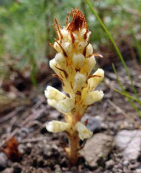 鑒別特征:列當(dāng)科列當(dāng)屬二年生或多年生草本,高12—34厘米。全株密被腺毛。莖直立,單一,不分枝,圓柱形,肉質(zhì),具縱棱,基部常膨大,具不定根,黃褐色。葉鱗片狀,卵狀披針形或條狀披針形,黃褐色,先端尾尖。穗狀花序頂生,具多數(shù)花;苞片卵狀披針形,先端尾尖,黃褐色,密被腺毛;花萼2深裂達基部,每裂片再2中裂(小裂片條形,黃褐色,密被腺毛)?;ü邳S色,2唇形;雄蕊4,二強。蒴果矩圓形,包藏在花被內(nèi)。