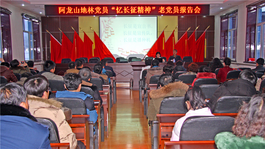 12月1日,內蒙古大興安嶺阿龍山林業局林地聯手舉辦黨員“憶長征精神”老黨員報告會,聘請老黨員為來自林地各行業的黨員干部、團員青年講述長征精神的偉大意義。(梅金成)