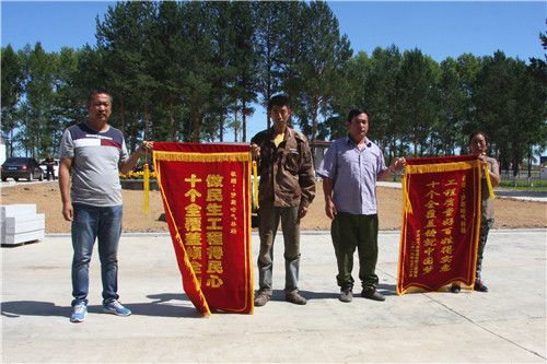 居民們紛紛稱(chēng)贊黨的政策好,干部職工賣(mài)力氣。錦旗贈(zèng)送者之一的居民宋憲春看到自己從小長(zhǎng)大的地方發(fā)生了如此翻天覆地的變化心中激動(dòng)不已,由于自己長(zhǎng)期在外地打工,留守在家年邁多病的父母是他心中最大的牽掛,他說(shuō):“多虧了林場(chǎng)的干部職工幫忙照顧,只要老父老母有求于林場(chǎng),林場(chǎng)肯定第一時(shí)間組織人員為他們解決困難。這次“十個(gè)全覆蓋”工程,林場(chǎng)組織人員幫忙把家中的破舊倉(cāng)房進(jìn)行重建,又給院內(nèi)墊了沙子,換大門(mén),換杖子,粉刷房屋,一樣都沒(méi)落下。一回到家,看見(jiàn)現(xiàn)在的院落,心想,作兒子的都沒(méi)為老兩口做這么多,反而是林業(yè)局的干部職工替他做了。”這種感謝無(wú)法用金錢(qián)來(lái)衡量,所以他特意趕制了這面錦旗來(lái)表達(dá)對(duì)林業(yè)局干部職工的感激。
