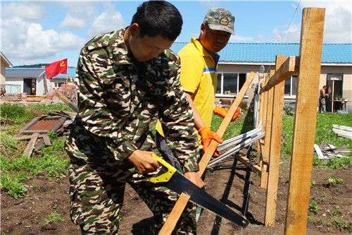 紅星林場“十個全覆蓋”工程和人居環境綜合整治工作,時間緊,任務重。為了打好“十個全覆蓋”攻堅戰。6月14日,阿里河局調動防火辦三個戰斗班共45人,由書記帶隊,自備鍋碗吃住在林場里。在工程建設中,防火辦負責建居民院落木柵欄、鋪設居民院里甬道、安裝鐵柵欄等任務,他們按照“十個全覆蓋”工程現場指揮部要求和安排,用“嚴”和“實”標準,高質量地進行施工建設。