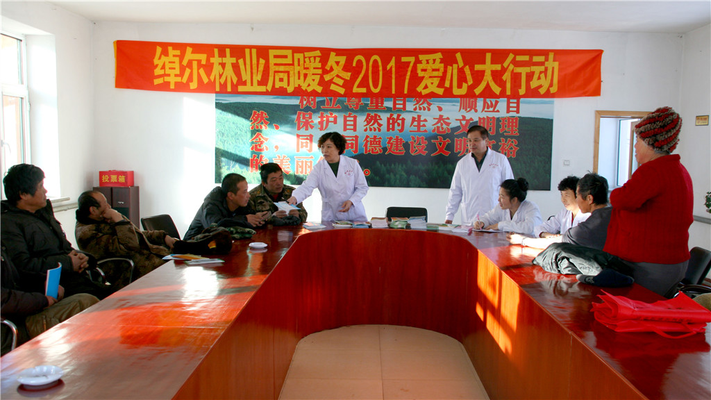 1月10日,內蒙古大興安嶺綽爾林業局聯合塔爾氣醫院開展了“暖冬送健康行動”活動,為一支溝林場的居民進行健康體檢。(李浩)