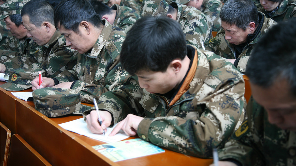 據了解,這個培訓班為期三天,授課內容為《防撲火當前形勢》、《火場自救(緊急避險)》、《運兵車輛安全知識》、《森林防火裝備》、《撲火技戰術實施》、《風力滅火機、水槍、水泵的使用原理與簡單故障的排除》等專業知識,考試成績將裝入撲火隊員個人檔案。 圖為撲火隊員在認真記錄筆記(王歡 康焱)