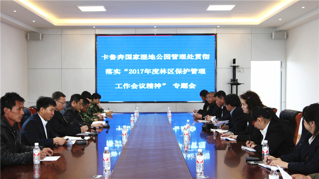 5月2日,得耳布爾林業局卡魯奔國家濕地公園管理處召開貫徹落實“2017年度林區保護管理工作會議精神”專題會。會議傳達了管理局2017年度林區保護管理工作會議精神,安排部署了卡魯奔國家濕地公園2017年的各項工作。來自資源科、防火處、森調隊、森防站以及卡魯奔國家濕地公園管理站的相關人員參加了會議。王秀鳳攝