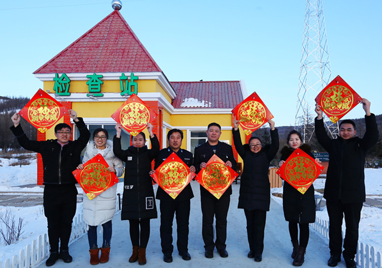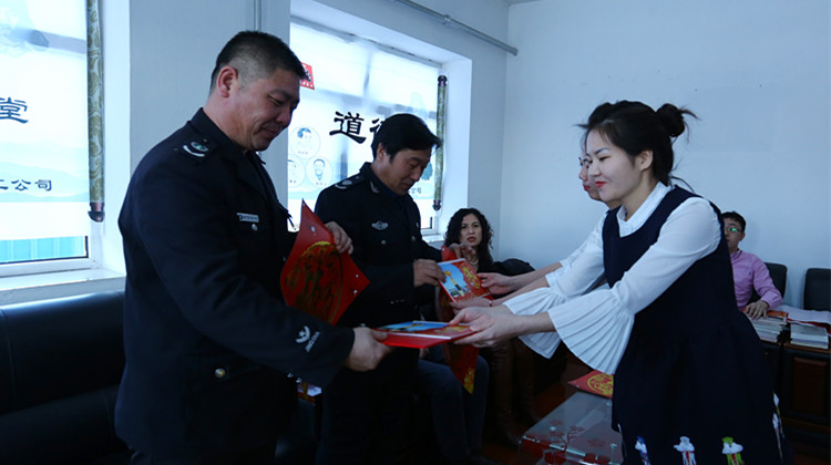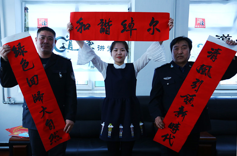 時至新春佳節到來之際,講堂上還為兩位檢查員送去了文化志愿者書寫的春聯、捐贈的書籍以及林業局印制的大紅福字、文化宣傳品。