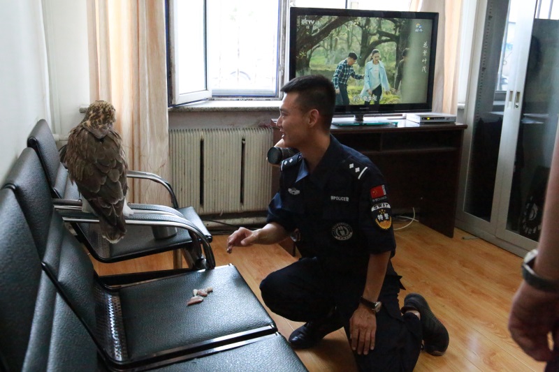 經查,該蒼鷹身體并無外傷,在民警買來豬肉對蒼鷹進行喂食飲水后,仍顯體弱且不具備放飛條件,隨后民警將蒼鷹移交林業局動保辦進行專業救助,待具備放生條件后在進行放飛。(高小軍)
