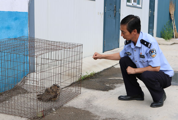 8月6日上午,烏奴耳林業(yè)局防火辦王某某在烏山林場(chǎng)5號(hào)檢查站附近,發(fā)現(xiàn)一只受傷的貓頭鷹,王某某怕貓頭鷹遭到人為傷害和野生動(dòng)物襲擊,出于保護(hù)將其帶回送到了烏奴耳森林公安局進(jìn)行救助。