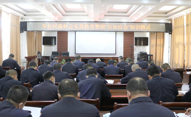 為推動隊伍教育整頓深入開展,檢驗、提升全體民警學習教育環節學習成效,進一步激發全體民警學習積極性和主動性,近日,畢拉河森林公安局組織全體民警舉行公安隊伍教育整頓“應知應會”測試和學習教育環節階段性評估調查問卷。