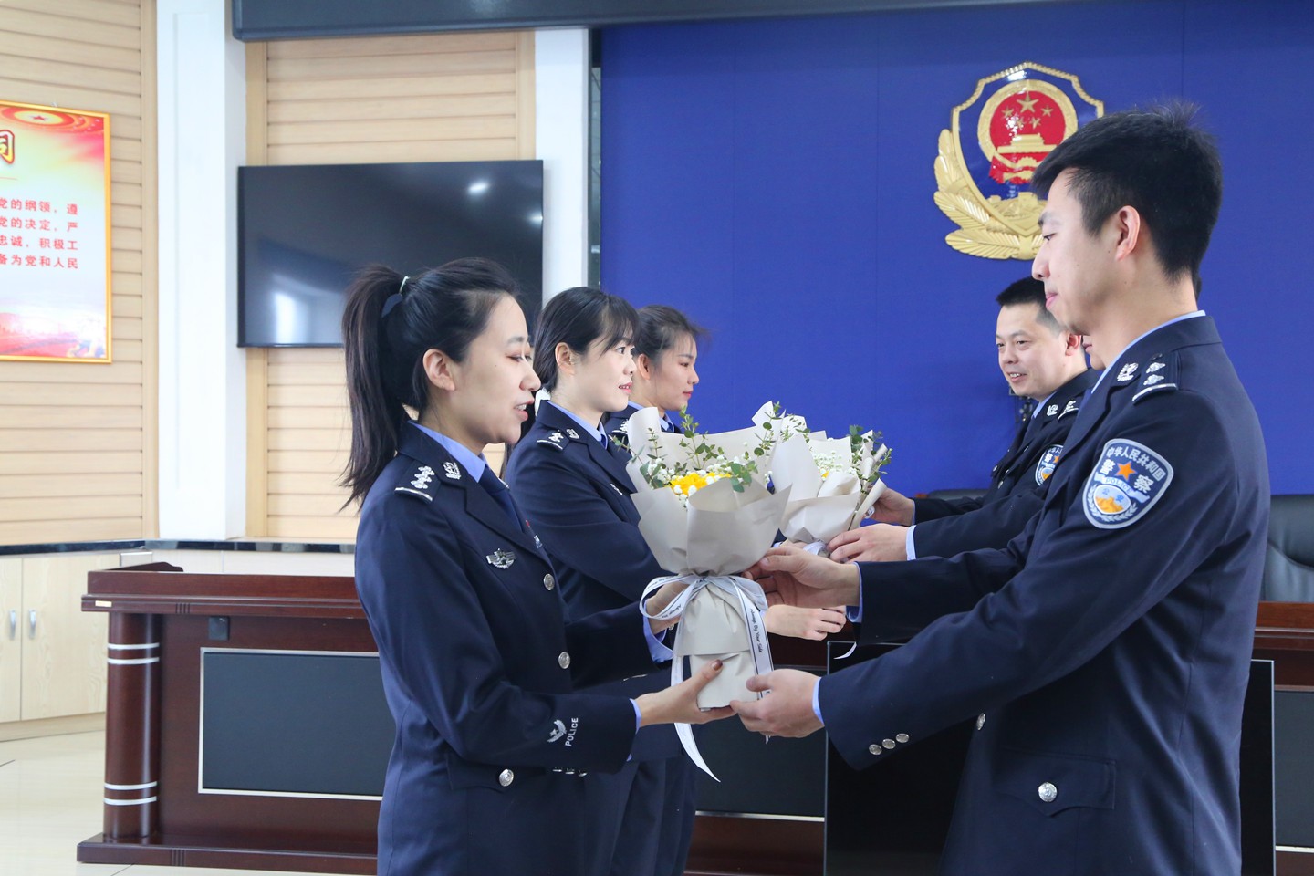 3月7日,內蒙古大興安嶺森林公安局牙克石分局舉行“三八節”為女民警送花活動,致敬在公安工作中默默奉獻的女民警, 感謝她們用熱愛與堅守,撐起公安工作的半邊天。(楊揚)