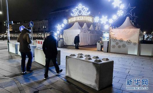 為應(yīng)對(duì)可能發(fā)生的恐怖襲擊,德國(guó)漢堡的一個(gè)圣誕市場(chǎng)附近增設(shè)了水泥路障。