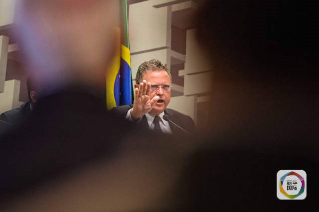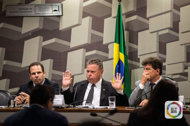3月22日,巴西農業部長布萊羅·馬吉(中)在參議院出席會議時回應“問題肉”事件。(新華社記者李明攝)