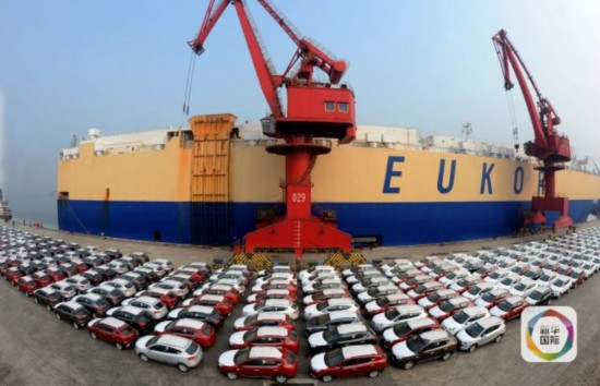 2016年1月9日,大批國產汽車在連云港碼頭等待裝船運往國外。(新華社發 王春攝)