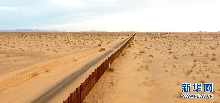 A+ 大這是2月10日在墨西哥索諾拉沙漠拍攝的美墨邊境墻。新華社記者淡航攝
